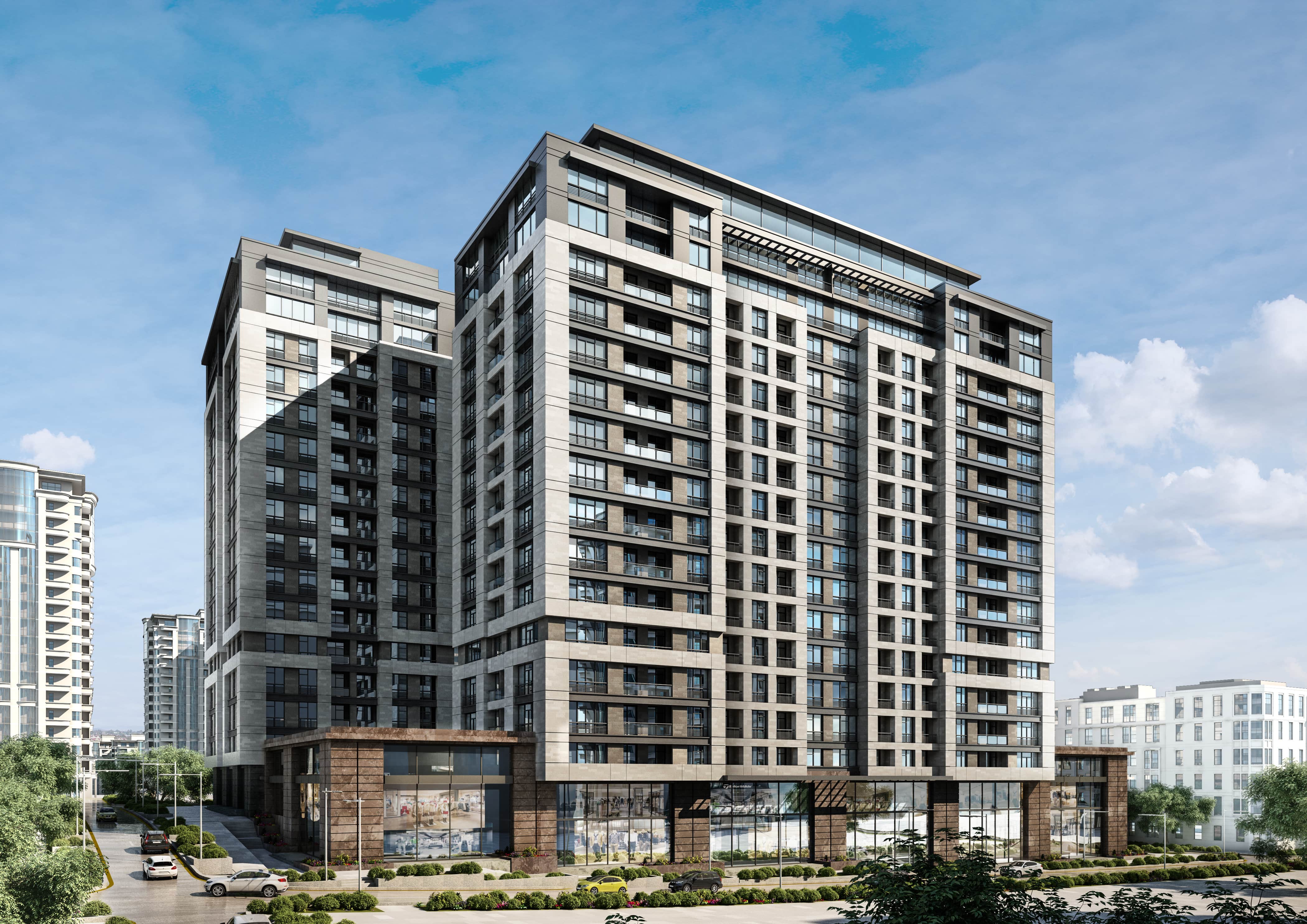BAKI ŞƏHƏRİ, NƏSİMİ RAYONU, S.RÜSTƏM, H.ƏLƏSGƏROV, XAN ŞUŞİNSKİ VƏ Q.QULİYEV KÜÇƏLƏRİNİN ƏHATƏ ETDİYİ ƏRAZİDƏ YÜKSƏKMƏRTƏBƏLİ YAŞAYIŞ BİNALARI. 2018-ci ildə tikintisinə başlanılmişdır.